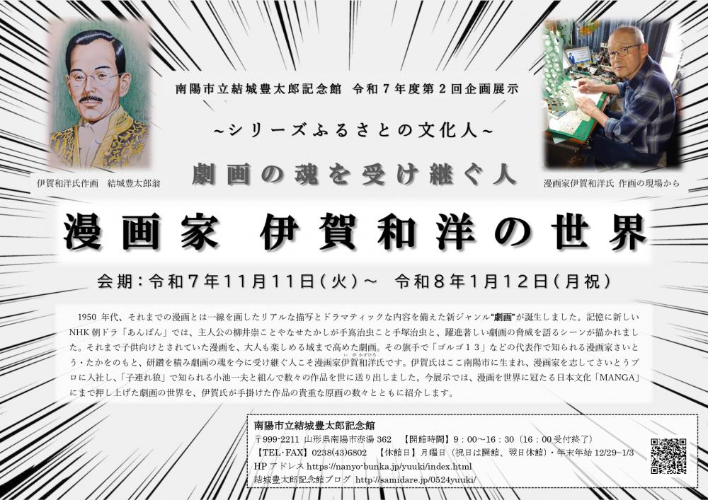 南陽市長岡出身の漫画家伊賀和洋氏。伊賀氏の漫画家人生の軌跡を、手掛けた貴重な原画の数々や長く業界で活動してきたからこそ知るエピソードとともに紹介しております。なかなかお目にかかれない貴重な彩色原画も多数ありますので、この機会にぜひご覧ください。