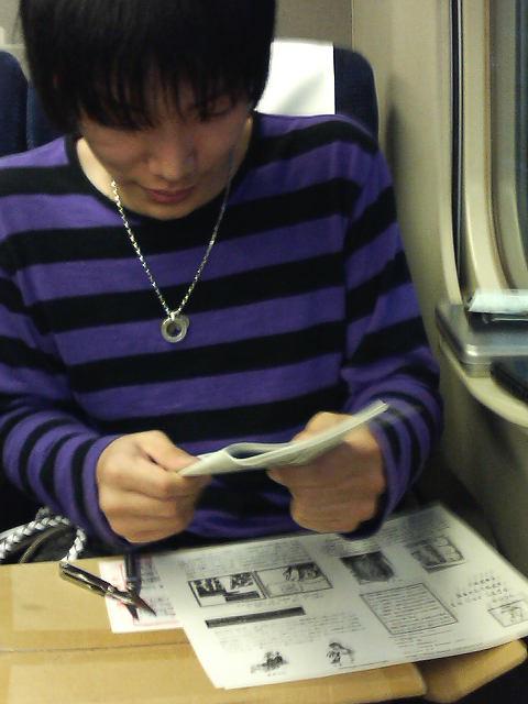 中村ゼミ名物、移動中に作業♪パンフレット作成中です