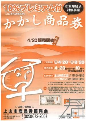 販売は、上山市商工会及びショッピングプラザカミンサービスカウンターで行います。