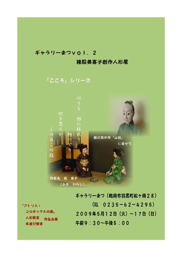 猪股美喜子創作人形展が、松ヶ岡ギャラリーまつにて開催されます。