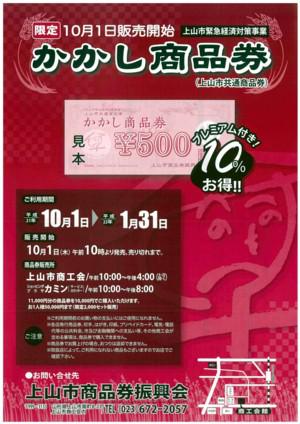 10%プレミアム付上山市共通商品券「かかし商品券」を10月1日より販売いたします。