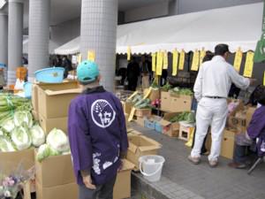会場の外では、野菜・ラフランス等の果物等この季節のものが、産業まつり特価で販売されております。