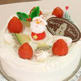 画像のクリスマスケーキは、大人気のデラックスケーキで、大きないちごとメロンがたくさんのっています。