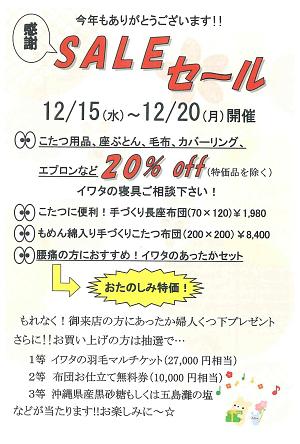 「橋本ふとん店」さんでは、今年のご愛顧に感謝して、”感謝セール”を開催します。