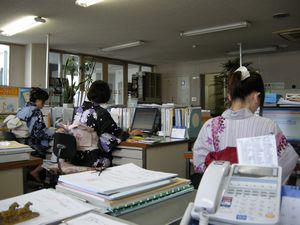 上山市商工会職員も”ゆかた”にて業務を行っております。