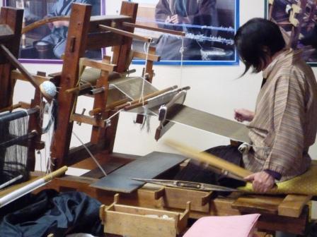 街中には機織りを見学できる工房がありきれいな絹糸を何千本を並べ織っていました