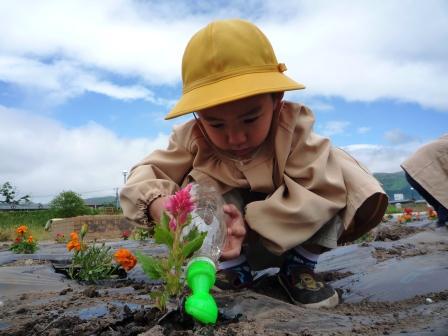 園児たちはみんな楽しそうに花を植え、水をやりました( ^)o(^ )