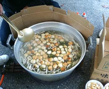仕上げに豆腐、焼きご飯(ダンゴ状のきりたんぽ)ネギなどが加わります。