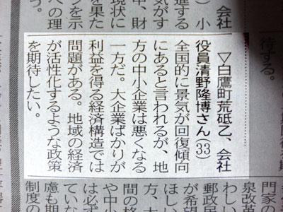 青年部員のセイノヤ隆博君の文章が山形新聞に掲載されました。