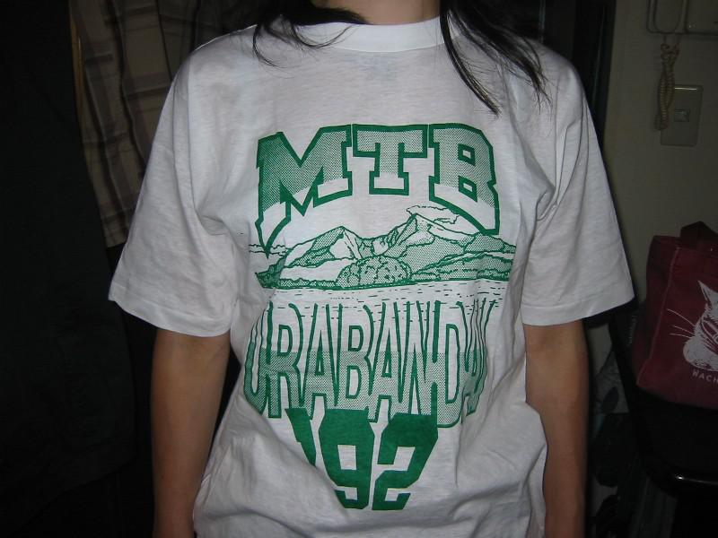 奥さんが見慣れないTシャツを着ていた。よく見ると、'92に裏磐梯猫魔スキー場で行われたDHの参加賞のTシャツ。しかも、ビニールから出したばかりのド新品。よくまぁ、こんなの残ってたな〜。