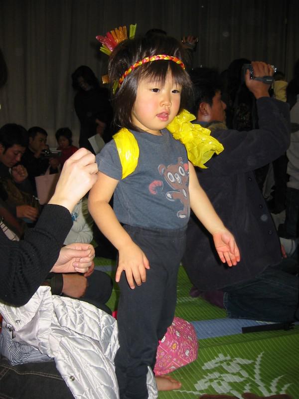 昨年のクリスマス会では、ママの手を離れたとたんに「びぇ〜」と泣き喚き、お遊戯では踊りも踊らず突っ立ったまま硬直し、歌も歌わずボケーとしておったムスメ。