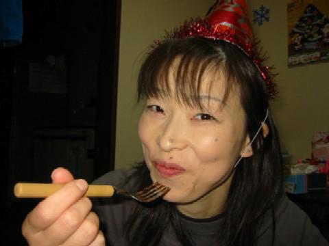 仕事帰りにケーキ買って帰りました。画像で奥さんが被ってるのは、誕生日とか、クリスマスとか、我が家でイベントがある時には、必ず被る事になっている三角帽子です。
