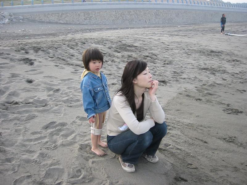 画像は大洗海岸にたたずむ母娘。この後、父娘は下半身ズダズダになりながら波遊びいたしました。