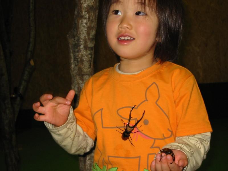 ムスメはドでかいやつを触っても平気なようで、記念写真をパチリ。(こいつは生きてます。)