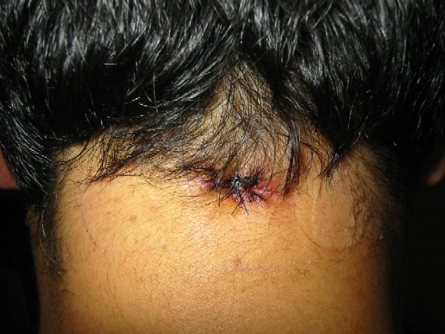 画像は手術の跡です。(抜糸前)なんか、マトリックスに入る為のプラグを取り付けられそう…