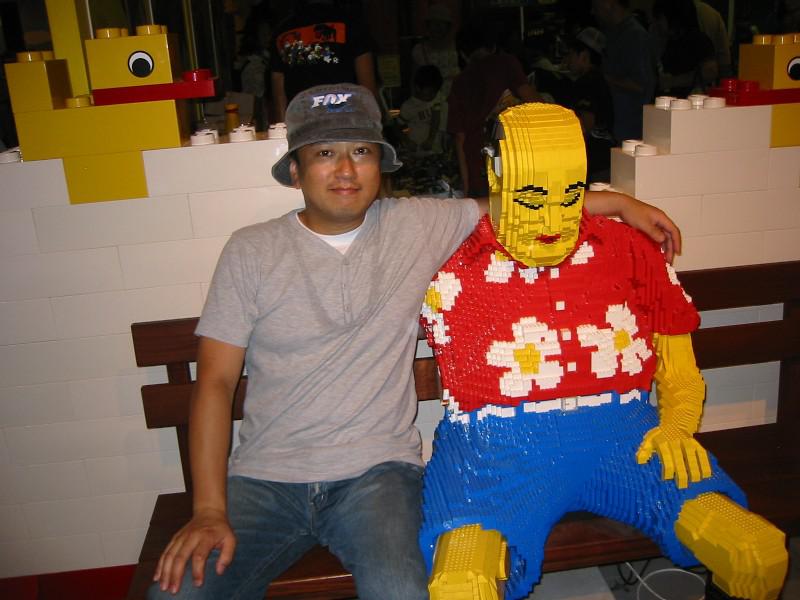 画像は、冷房の効いたLEGOスタジアムで、知らないおじさんミスター・レゴ(勝手に命名)とくつろぐ2ya。