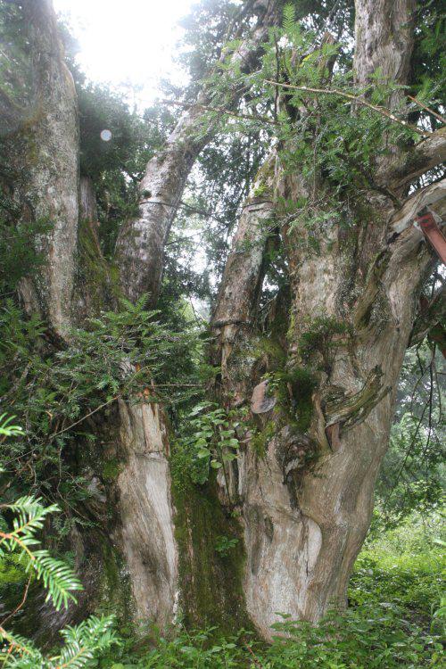 昨年の大雪で神代榧の太い枝が数本雪折れしました。写真は雪折れ前の写真です。樹齢1,500年と言われているご神木です。