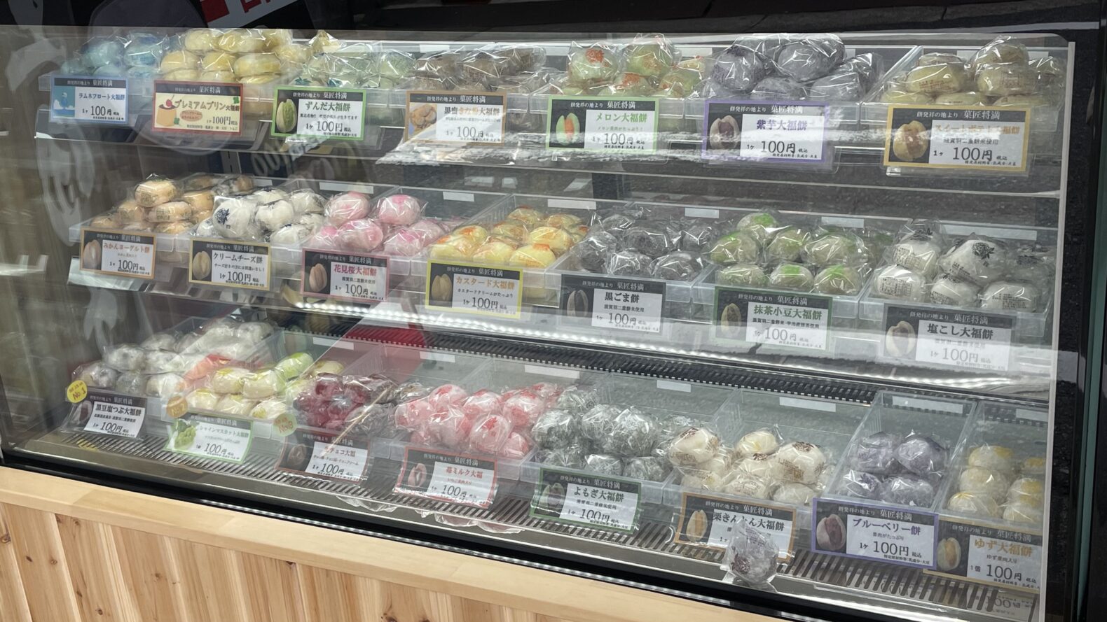 大福(すべて100円)は20種類位あり迷いましたが、無難な味を選び、