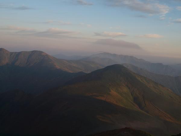 朝日の山々