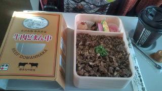これから社員旅行で東京に向かってます。朝一番からどまんなか牛肉弁当です!いつ食ってもうまいですねぇ。またさてさて、どんな旅になるのやら。(^-^)