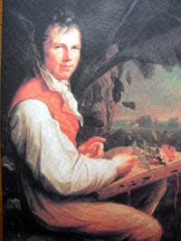 アレクサンダー・フォン・フンボルト(1769年、ドイツのベルリン生れ) フンボルトは、ペルー沖を流れる[フンボルト海流」(エルニーニョ現象の観測地)や南極大陸のアイドル「フンボルトペンギン」で有名!? 財産家の次男として生れた彼は、私財を投げ打って熱帯(中央)アメリカの研究に没頭するのです。 1799年6月から1804年8月までの5年2ヶ月間、熱帯アメリカ(メキシコ〜ブラジル北部)を歩き、地理学、気象学、植物学それぞれの観点から同地域をくまなく探索し、世界にその姿(豊かな国土や植物、人類、文化)を知らしめるのでした。(スパイ説:侵略や地下資源の発掘のため探索したのではないかとの、推測もある) そんな探検のある日、メキシコ山岳地帯のある都市で見事に開花する「ダリア」を発見するのです。 |