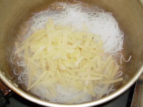 水を切り、糸こんにゃくと一緒に水気を飛ばすために乾煎りし、油で炒めました。