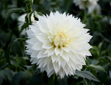 花径:中輪(17p前後)、花型:ID(インフォーマルデコラ)、花色:白芯クリーム、草丈:中性(100p程度)、作出者:鷲澤氏(06年)