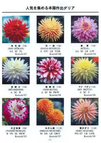 新花のほかにもダリアライフを彩る小西ダリア園産や輸入された世界の名花、話題の品種が続々掲載されています。