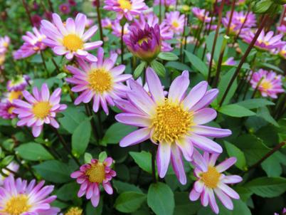 さて、ダリアの花弁数は、咲き始めの初夏と開花後期の晩秋で大きく変化するものも少なくありません。徐々に花弁数が減って行きます。開花が進むことによる花径の小型化によるものもありますが、日照時間が短くなり気温の低下が進む晩秋になると、花弁数が極端に減少し花弁と花弁の隙間が広がって行きます。また、咲き始めから開花までの時間も早まります。