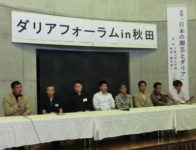 同フォーラムは日本ダリア会の主催で行われ、理事長を務める鷲澤幸治氏が経営する「秋田国際ダリア園」の開園25周年を記念し、同園んで開催されました。