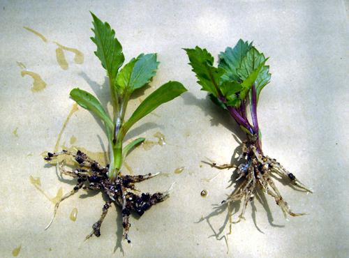 5月中旬にさし込んだ苗にも約1ヶ月経過し、十分に根が付いています。