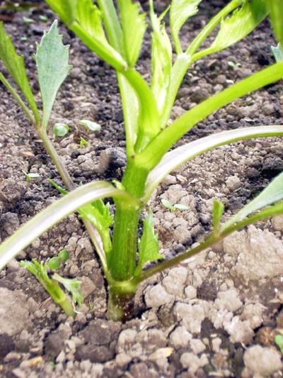 ≪摘心時期≫ 球根を植え付け発芽後、2〜3週間で草丈が10〜15センチになります。その頃には、葉が4段(主茎の4節目)8枚作られ、中心が筆状になっています。(写真)