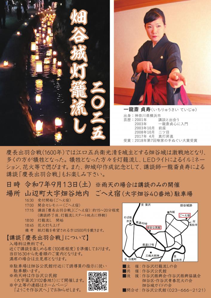 『畑谷城灯籠流し2025』が9月13日(土)に行われます。