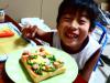 ケチャップを塗った食パンにコーンととろけるチーズと一緒に飾って