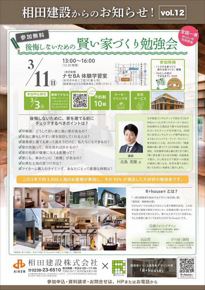 3月11日に開催されます「賢い家づくり勉強会」のご紹介です。