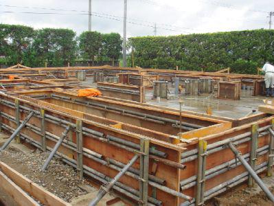 先週、ベタ基礎の打設が終わり立上りの型枠が組まれました。