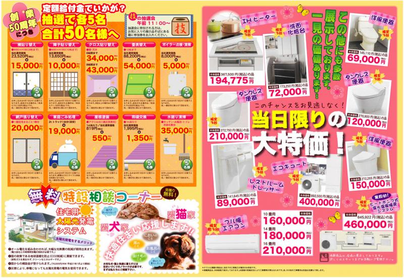 来る4/19(日)開催の「メモリアルご奉仕祭」の新聞折込チラシ、本日配布となりました(米沢市、南陽市、高畠町、川西町)。是非、ご覧下さい。当日、社員一同、お待ちいたしておりマース!