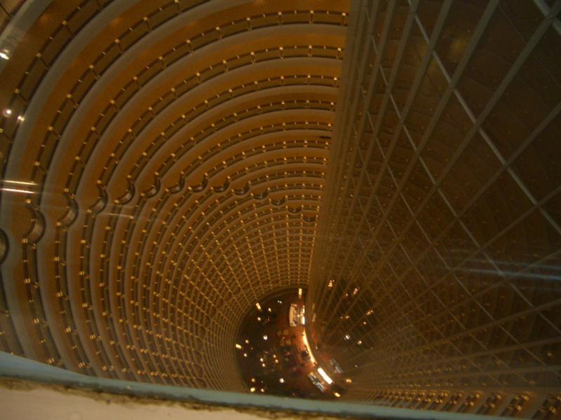 この日もとにかく暑い!七浦路はいわゆる服の市場です。ものすごい混雑。日本の流行りとはやはり違うようですが、いいものもあったので、購入。人民広場の近くの呉越人家の蟹が入ったラーメンを食べました。なかなか美味しいです。金茂大厦とはグランドハイアットの入った88階建のビルです。50階あたりから吹き抜けです。恐ろしく覗けませんでした(写真参照。手だけ伸ばして撮りました)。
