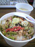 写真は「バジル丼」です。社内でもファンが多い1品です。昼一で買いにいくと並びます。