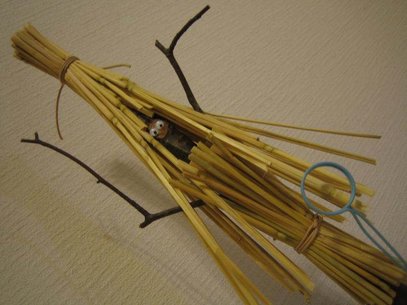 娘たちが学校で育てた稲の藁を使った物づくりで