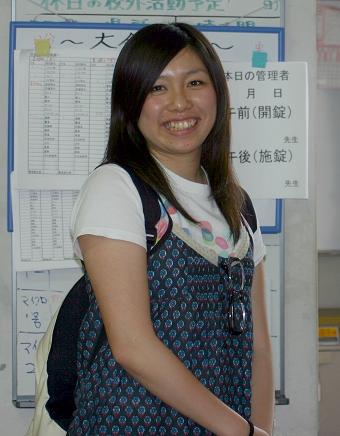 平成20年3月卒業、プログレス・コース1期生の志摩 瞳です。留学前に先生方にお会いしたくて、今日(5月26日)母校にやってきました。