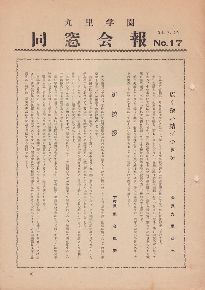 ▼同窓会報17号 1960(S35).7