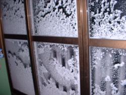 窓に雪がへばりついています・・・