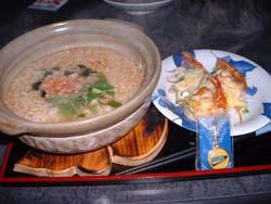 これは、「蟹、鮭、いくらの雑炊」と「海老のサラダ」見たいなやつです。
