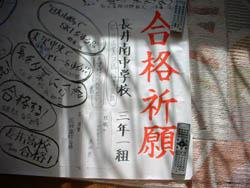 「長井南中3年1組様」で合格祈願のご祈祷してきました。
