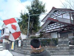 こんな糞純和風な家の脇にあるのはたしか、カナダの国旗・・・