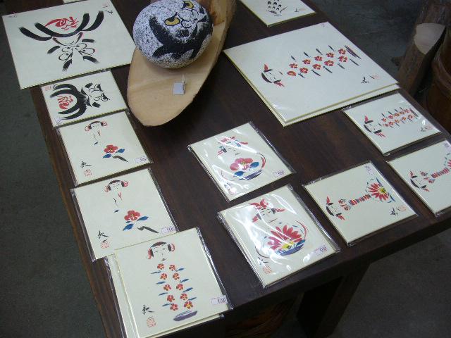 ▼こちらは色紙に描かれた、こけしやおたかぽっぽの絵柄
