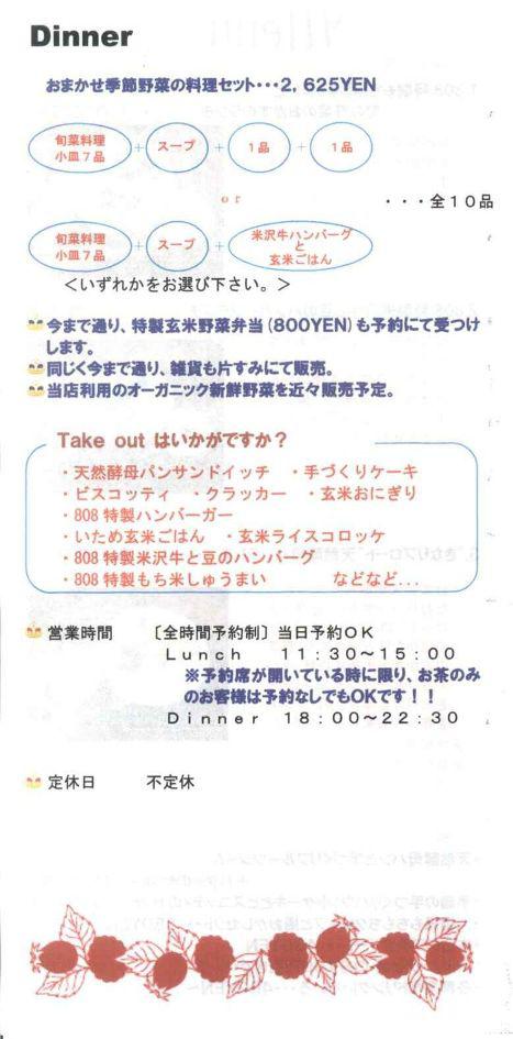 ▼ディナーメニュー パンフレットより抜粋