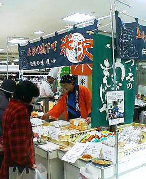 こちらは「つつみ本店」さん。今回初参加ですが、がんばって販売されてます。うこぎまんじゅう、うこぎ餅、ラフランスや柿のようかん、時雨の松、のし梅、好評です。