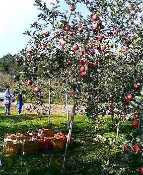 いい香りが漂うリンゴ畑の中で自分の手でもぎ取りするのは楽しいですよ。